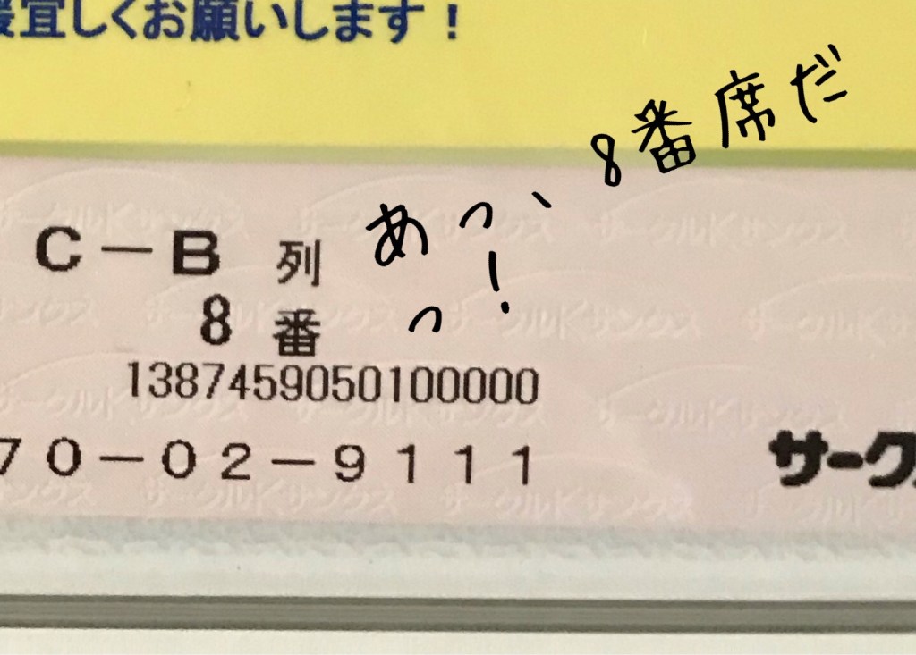 お礼を言ってチケットを受け取り、気になる席はどこかなと席番に目をやった。