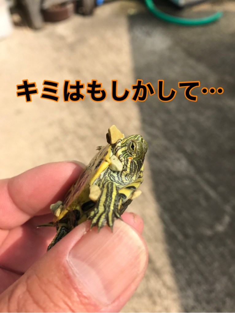 水槽の脇に生まれたての赤ちゃんカメが佇んでいた!