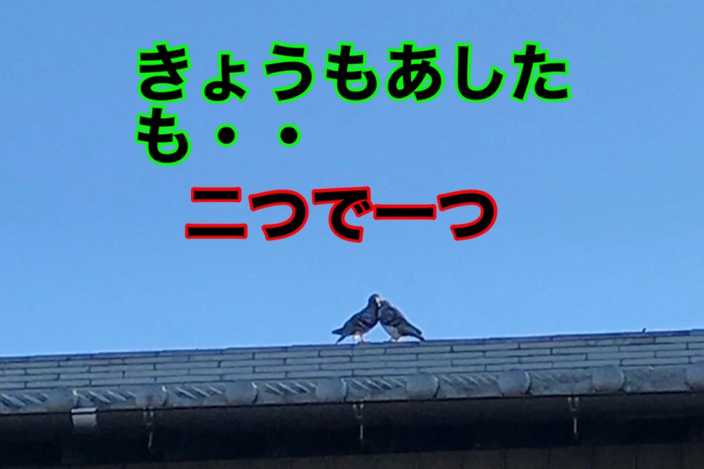 更には、お隣さんの屋根の上に二羽の鳩がやって来て、毎日毎日仲睦まじい姿を見せてくれるようになっていた。