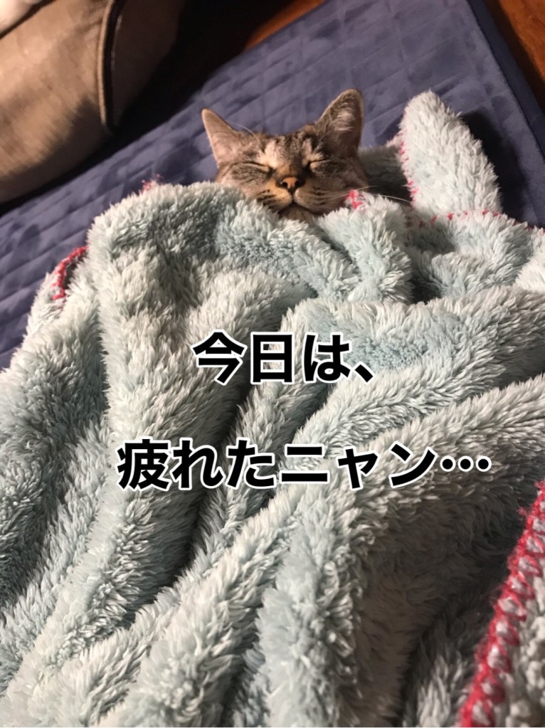 今日はストレスで、お昼寝も出来なかったネコニャン…。