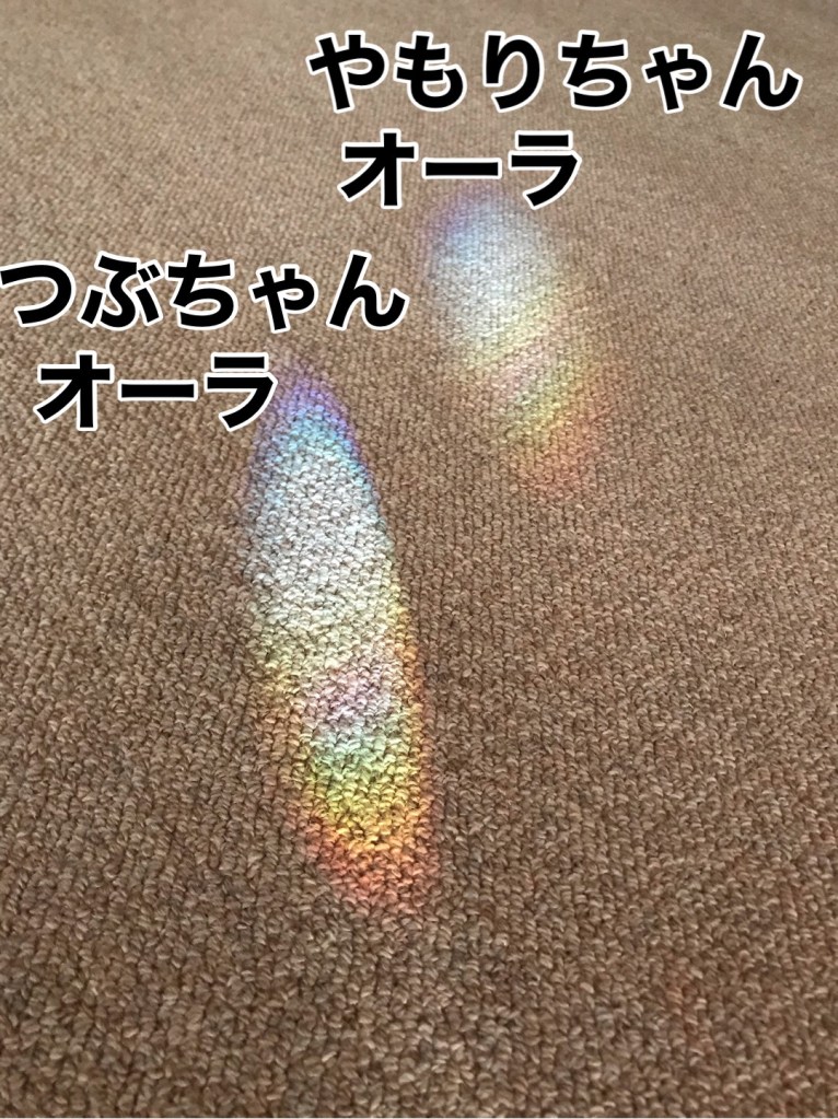 仏間の絨毯の上に、二つの虹が現れていた。