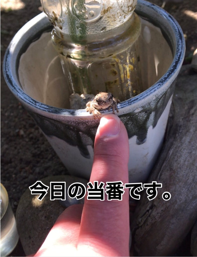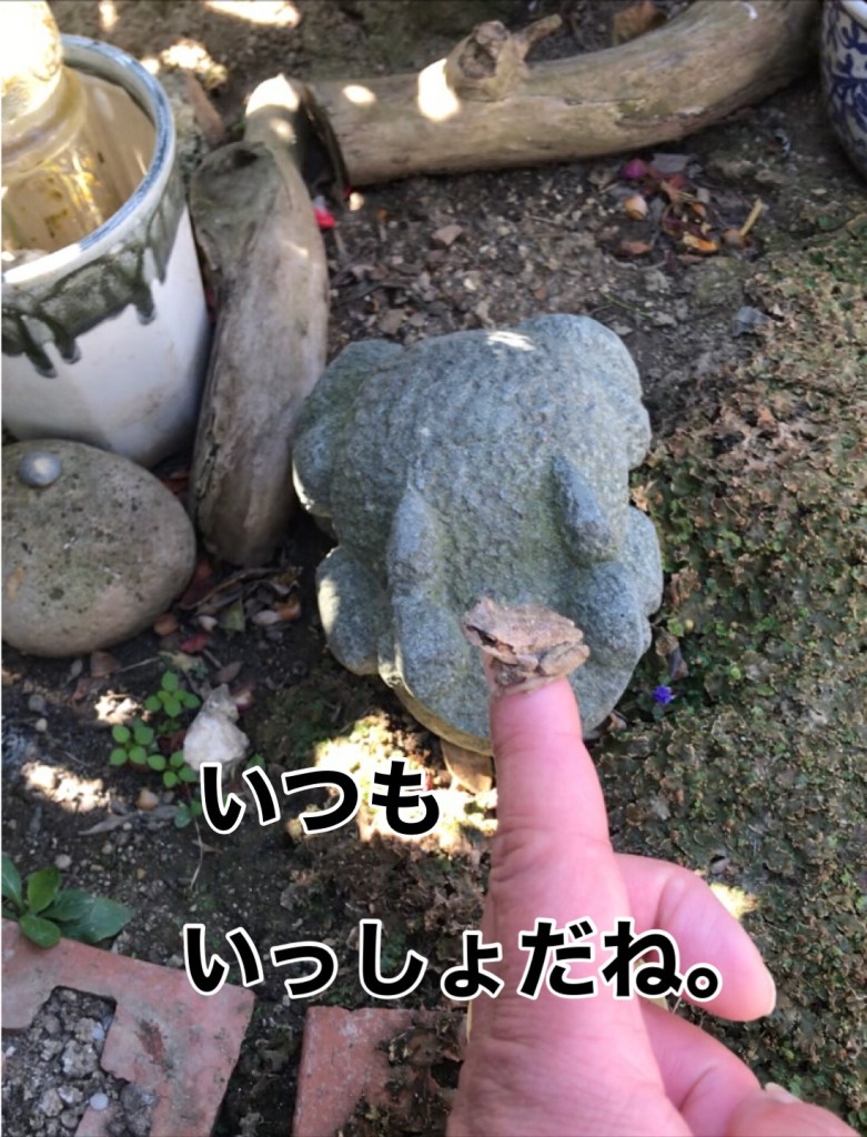 今日はお墓の供花のところから、一匹のカエルくんが見つめている。