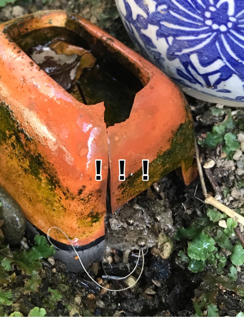 すると、僕の足音や気配を感じてか、そこに暮らすカエルくん家族が顔を出す。