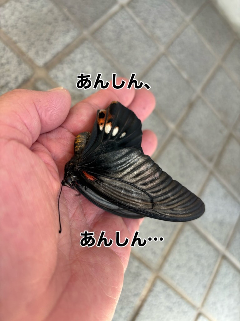 何かと思い近づいてみると、一頭の蝶々がチカラ尽きていた。