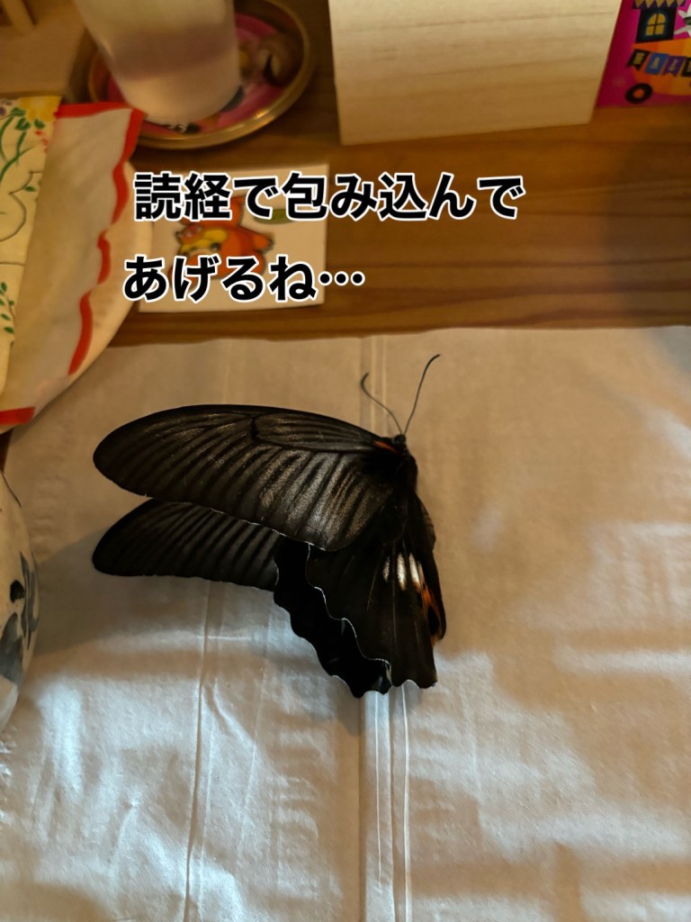 なんだか、蝶々を守ってあげられたような、そんな嬉しい気分になった僕は、法衣に着替え読経で蝶々を弔ってあげることにした。