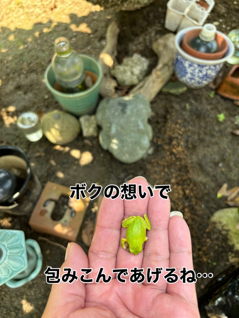 その言葉とともにティッシュペーパーで包むと、アマガエルは“寝床”へと納まった。